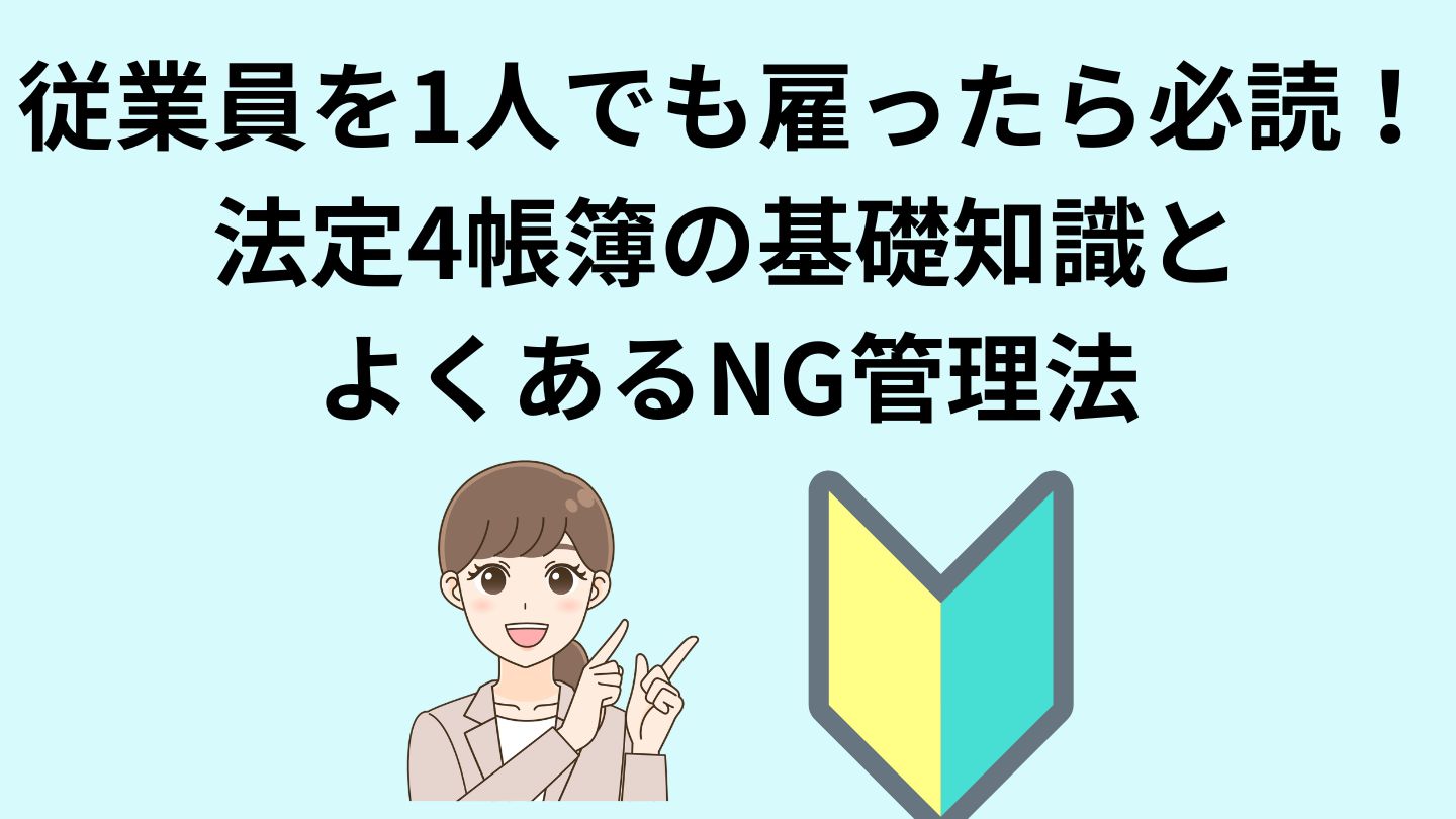 従業員を1人でも雇用したら、まずは「労働者名簿」「賃金台帳」「出勤簿」「年次有給休暇の管理簿」の4つが正しく作成・保存されているか、今すぐ確認してみましょう。