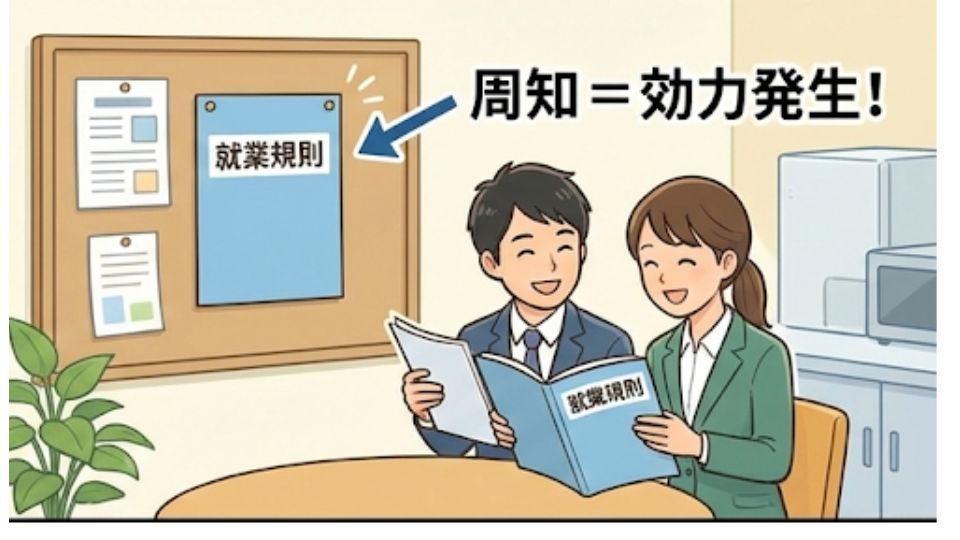 - 「従業員への周知」によって効力が発生する。